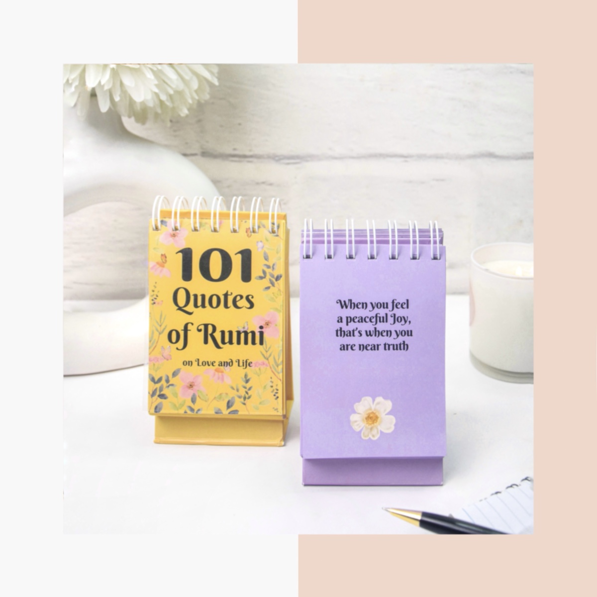 Discover 101 thoughtfully curated cards, each adorned with profound quotes on love and life from the great poet Rumi.