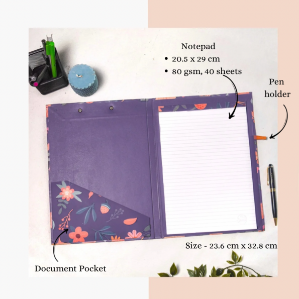 With the top featuring a metal clip writing pad, your papers stay secure and organized at all times. And let’s not forget the integrated pen holder, ensuring that your favorite writing instrument is always close at hand.