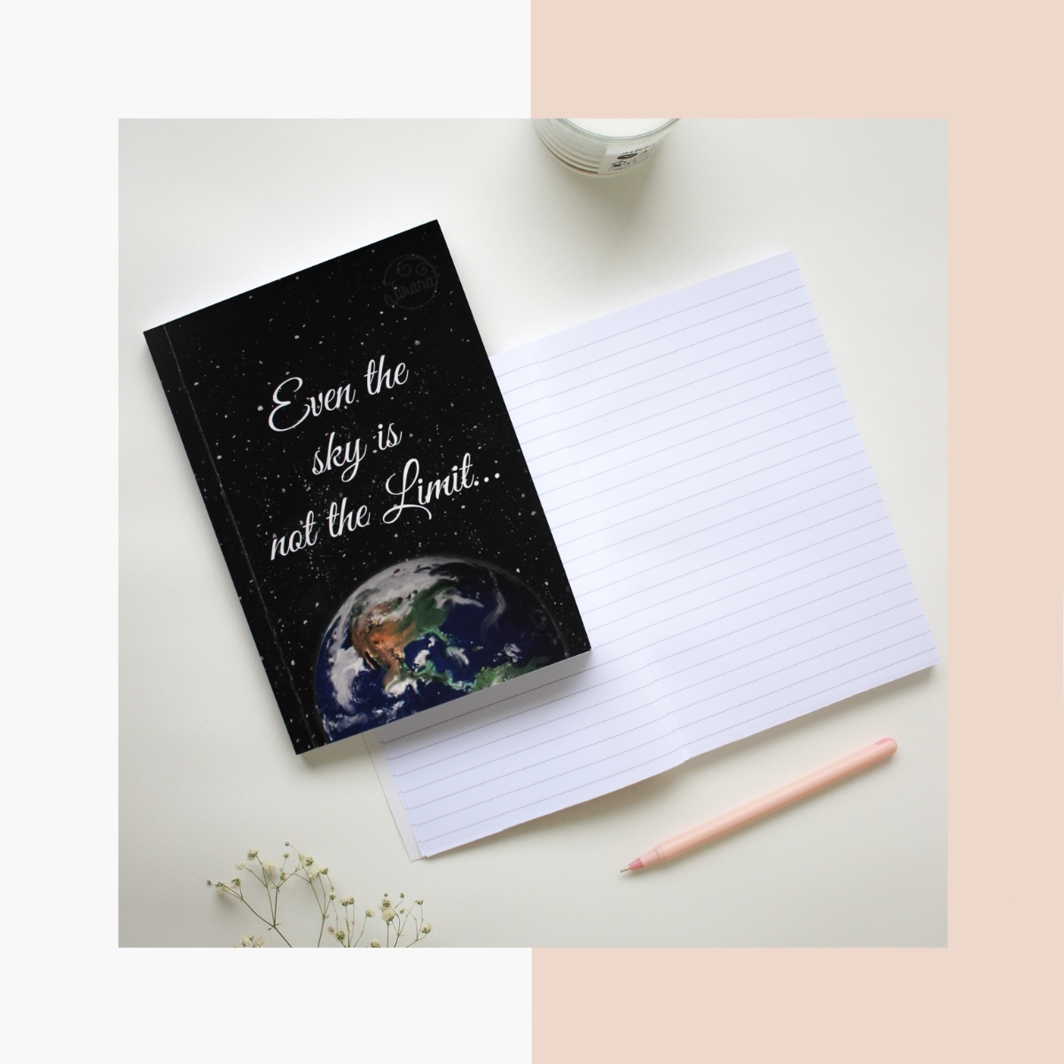 Our A5 soft cover Notebook is made with our artwork print illustrated by Rhea Shah as the cover, with a velvet lamination. The book contains 100 gsm thick paper consisting of 80 ruled pages.