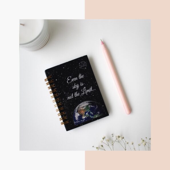 Our A7 pocket spiral Notebook is made with our artwork print illustrated by Rhea Shah as the cover, with a velvet lamination. The book contains 100 gsm thick paper consisting of 50 ruled pages. Dream Big Pocket Notebook