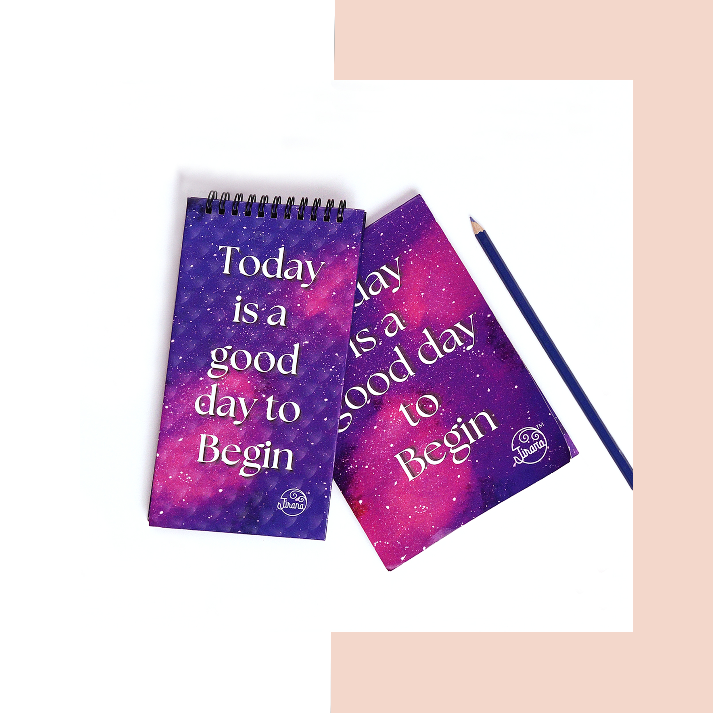Our A7 pocket spiral Notebook is made with our artwork print illustrated by Rhea Shah as the cover, with a velvet lamination. The book contains 100 gsm thick paper consisting of 50 ruled pages.
