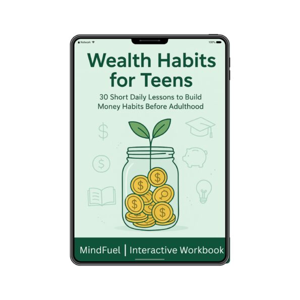 Wealth Habits for Teens is a 30-day guided workbook designed to teach teenagers real-life money habits in a simple, practical, and engaging way — without boring lectures or complex financial jargon.